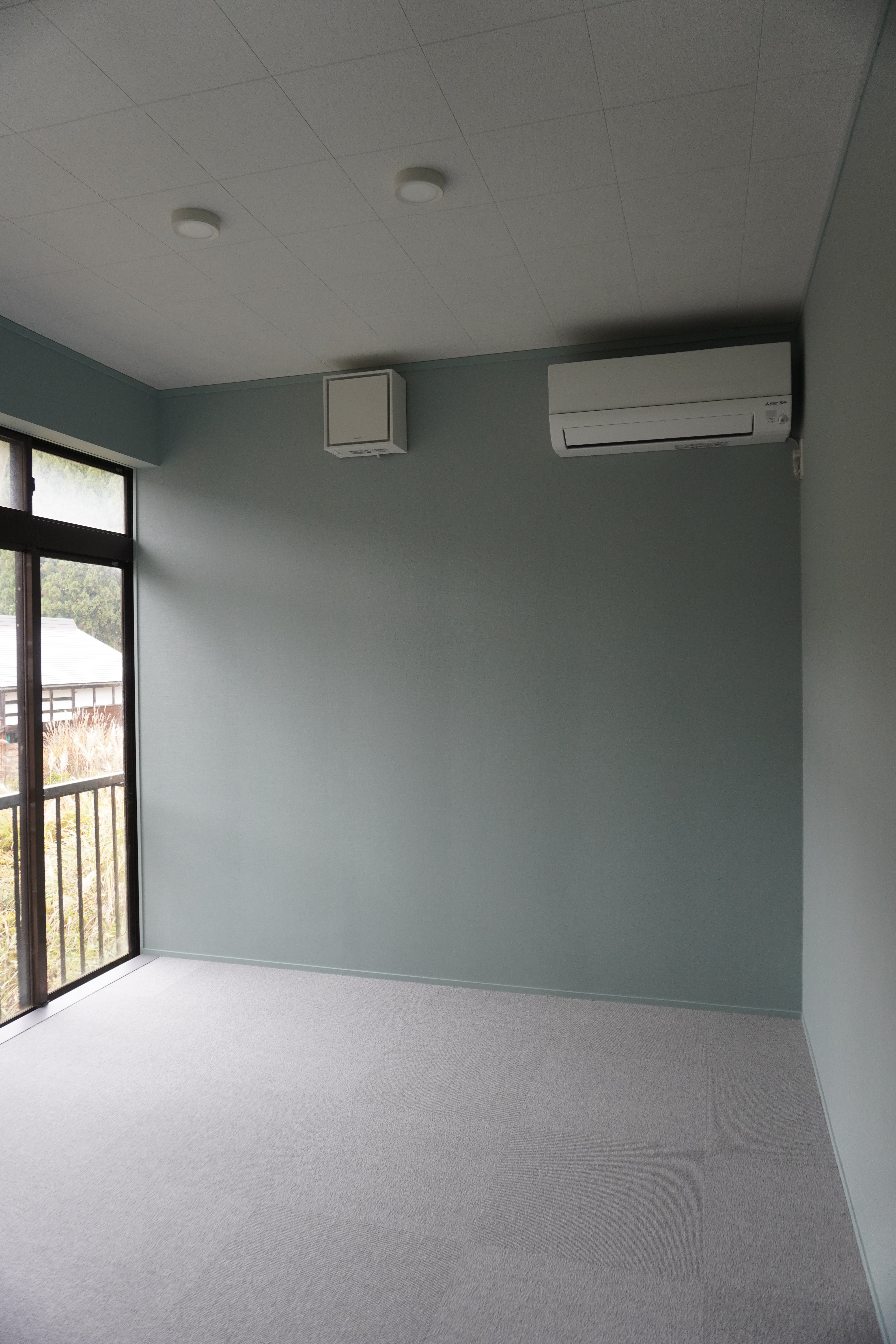 爽やかなブルーグリーンの壁紙を使用し、心まで穏やかに整うリラックス空間に。