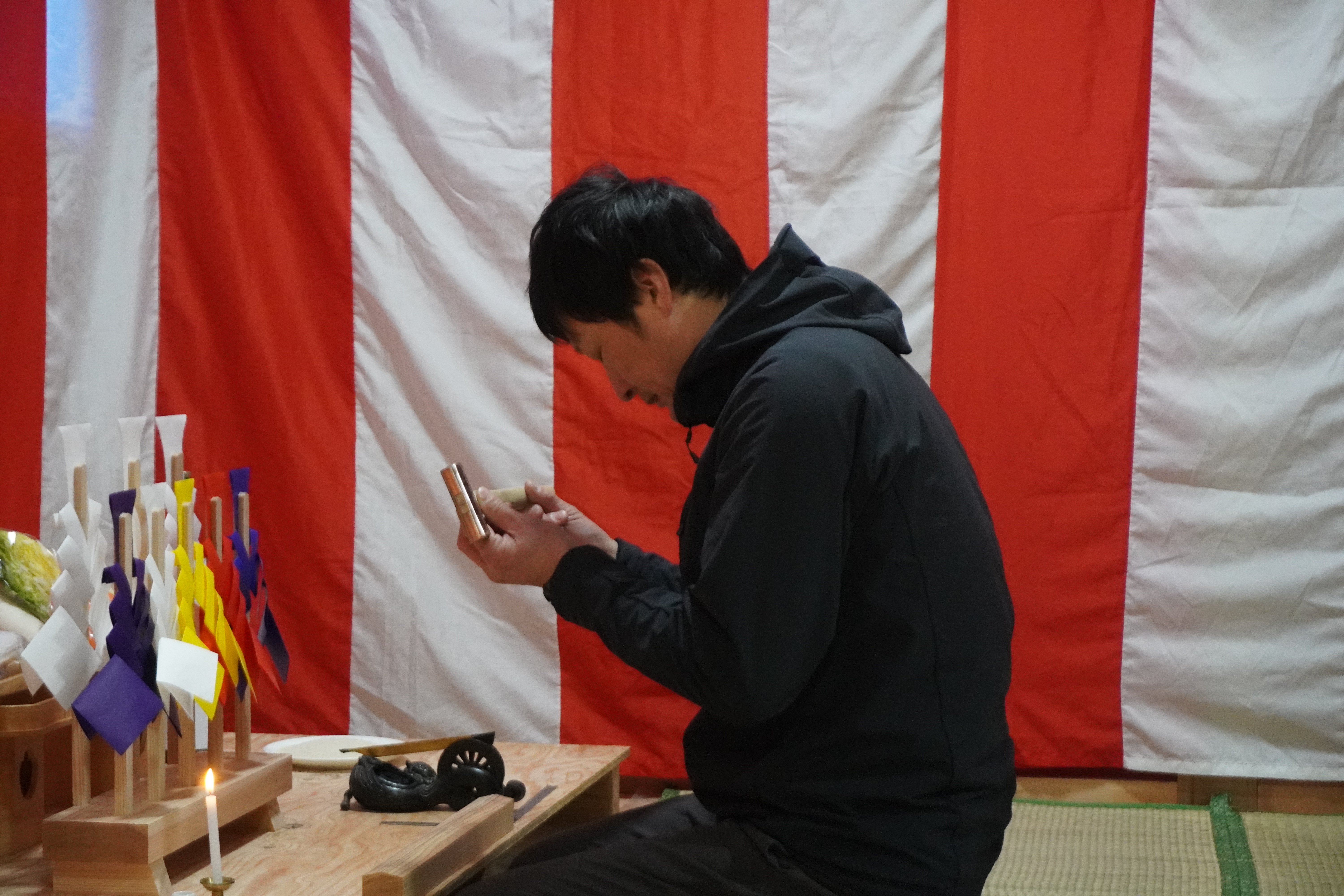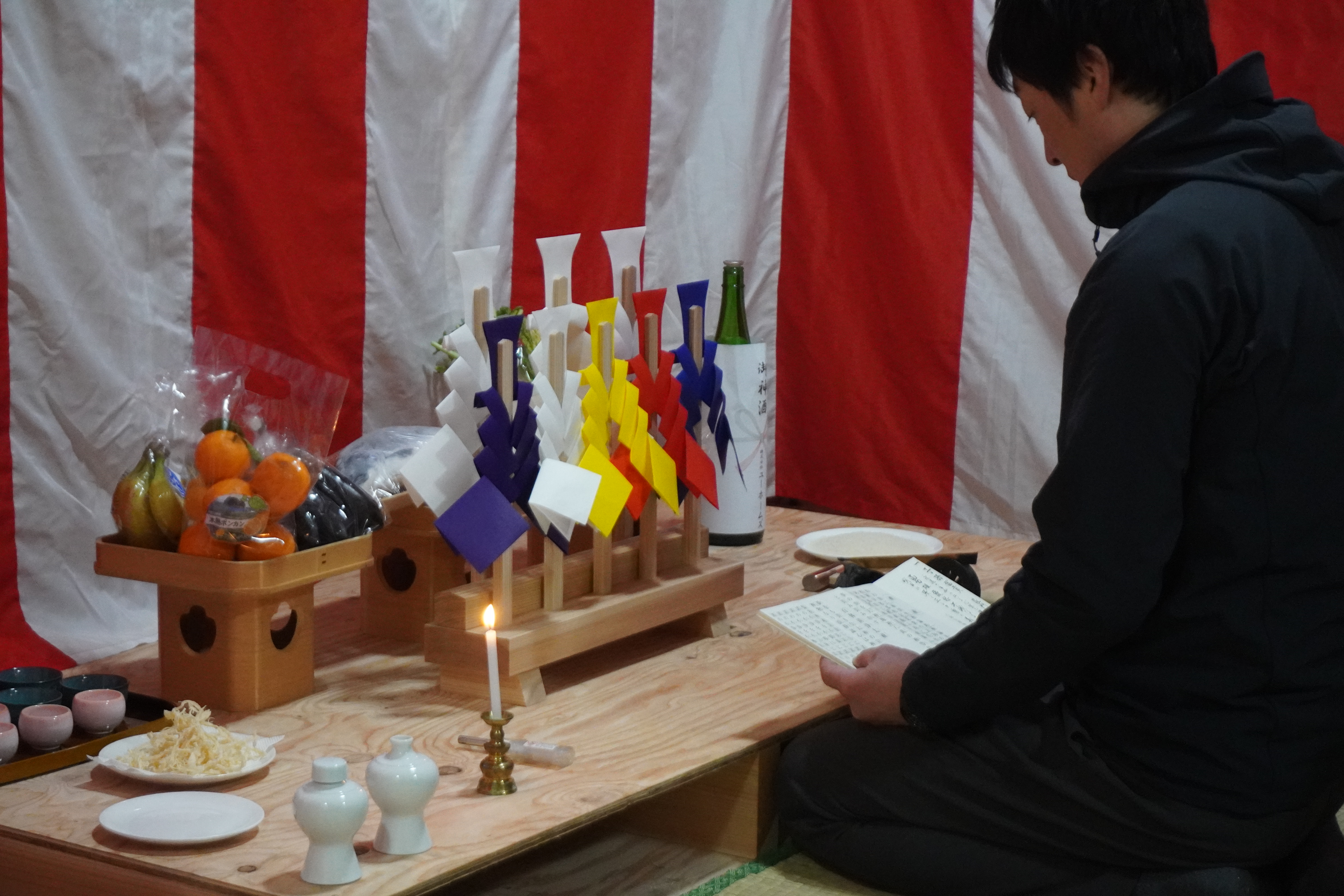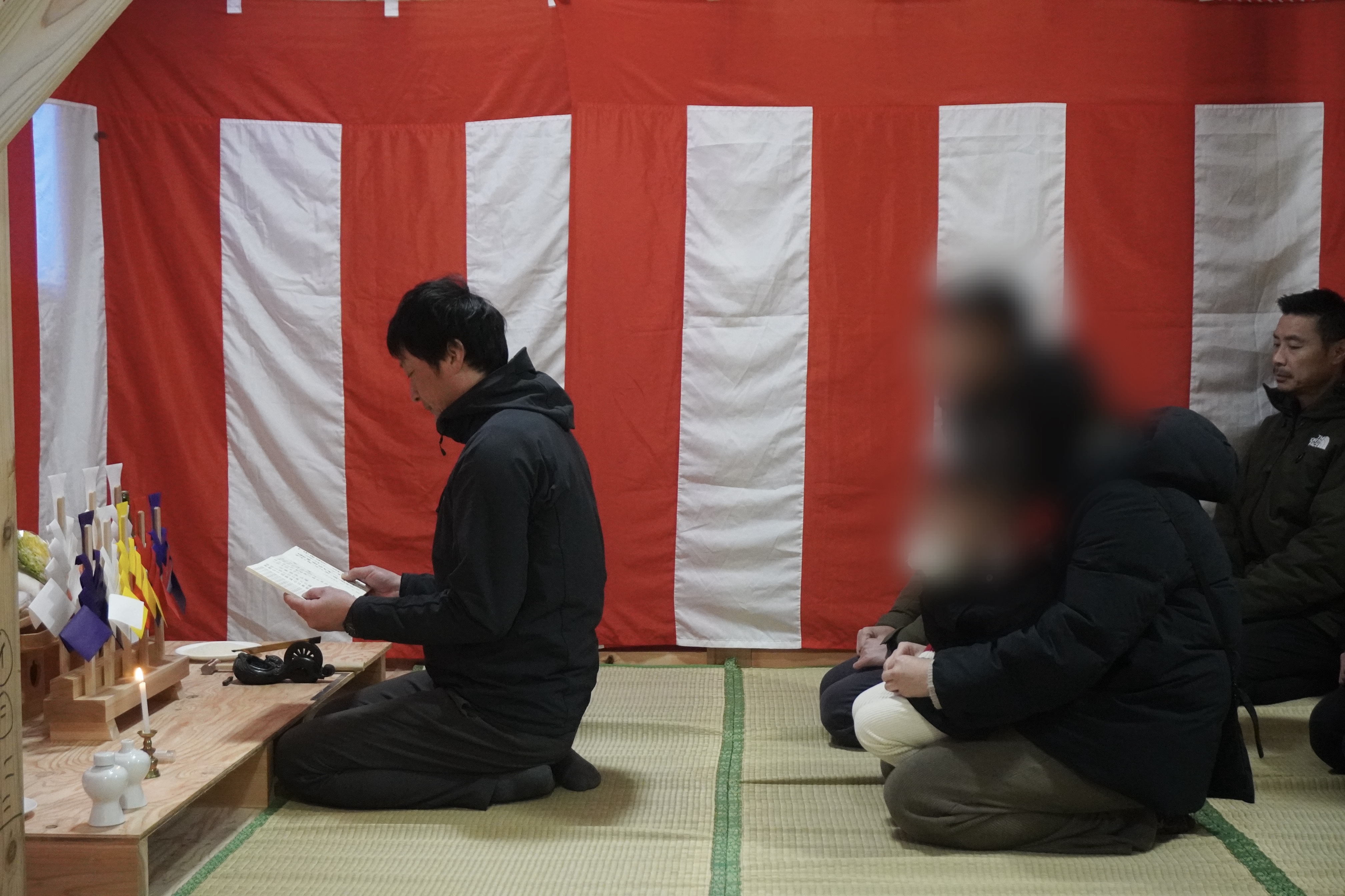 これからの工事の安全を祈願し、棟梁が祝詞を読み上げます。