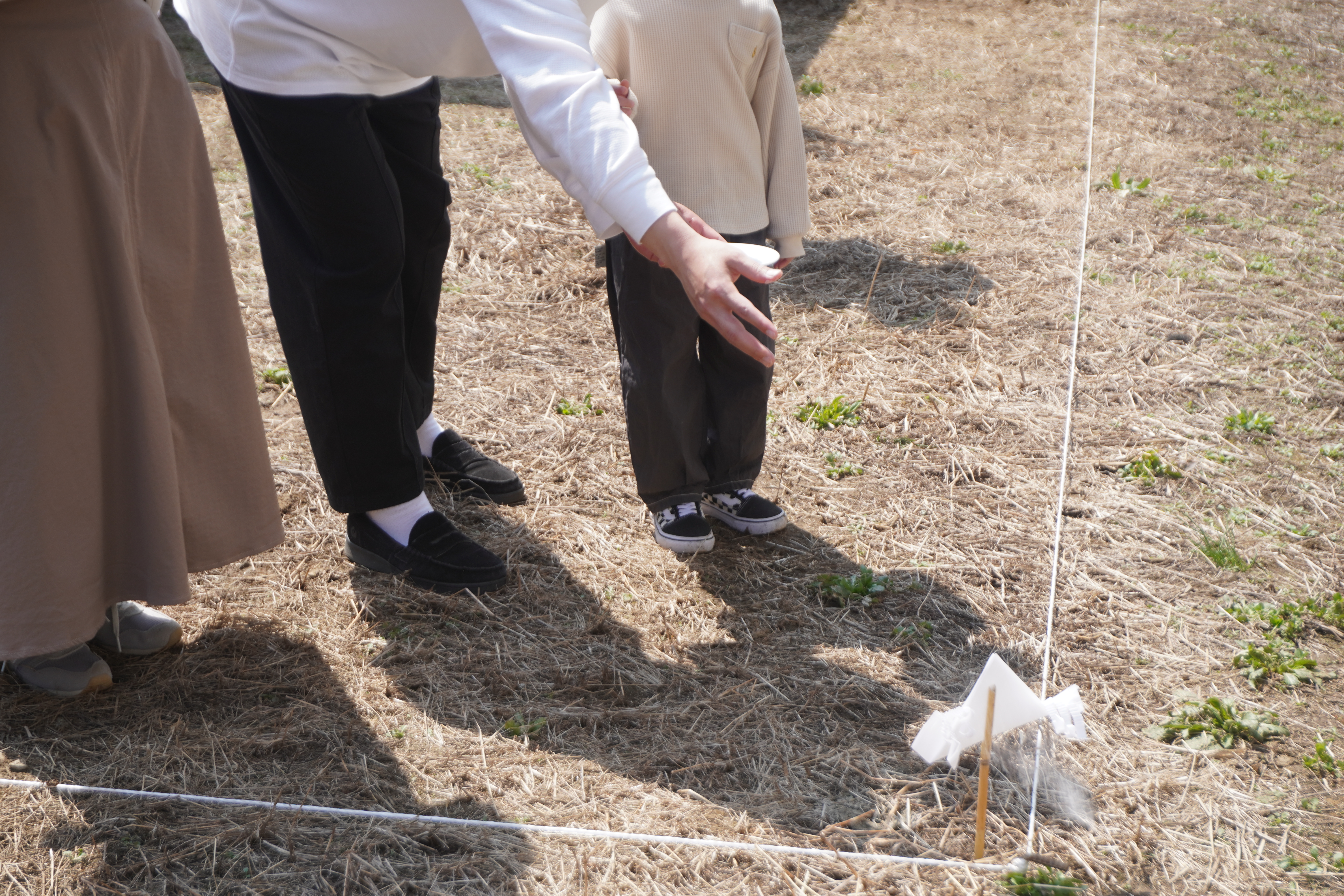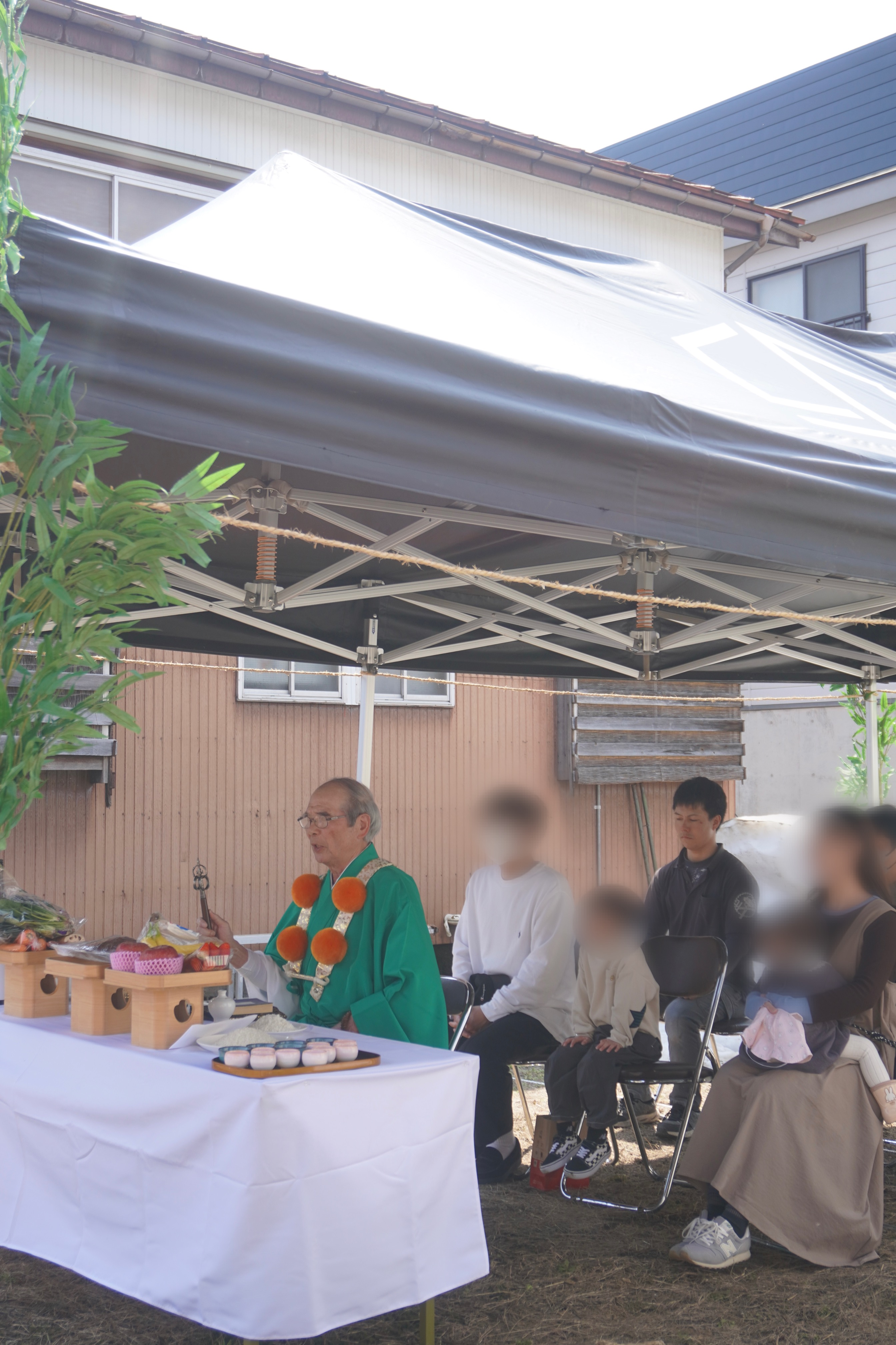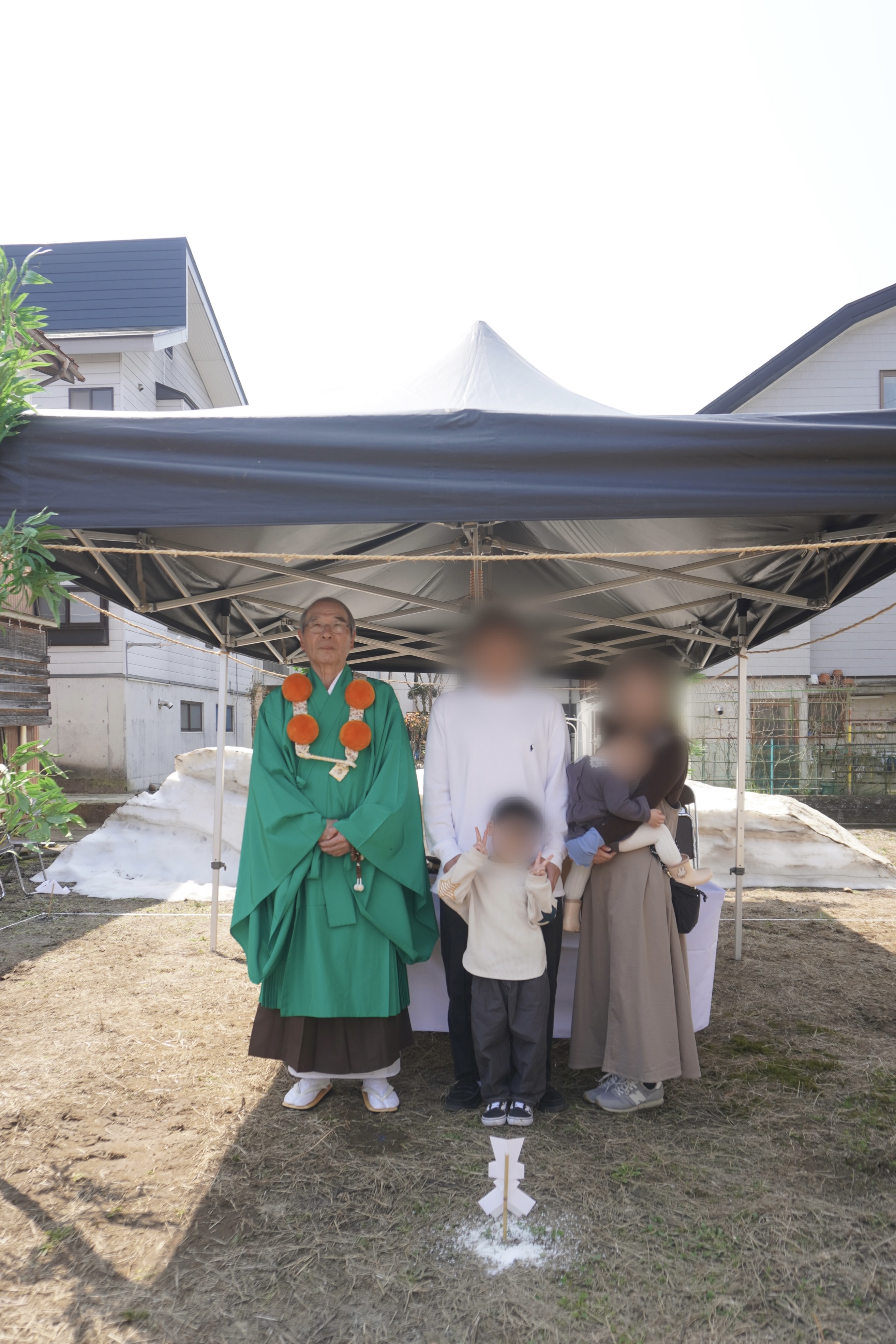 青空のもと、ご家族皆さまで地鎮祭にご参加いただきました。