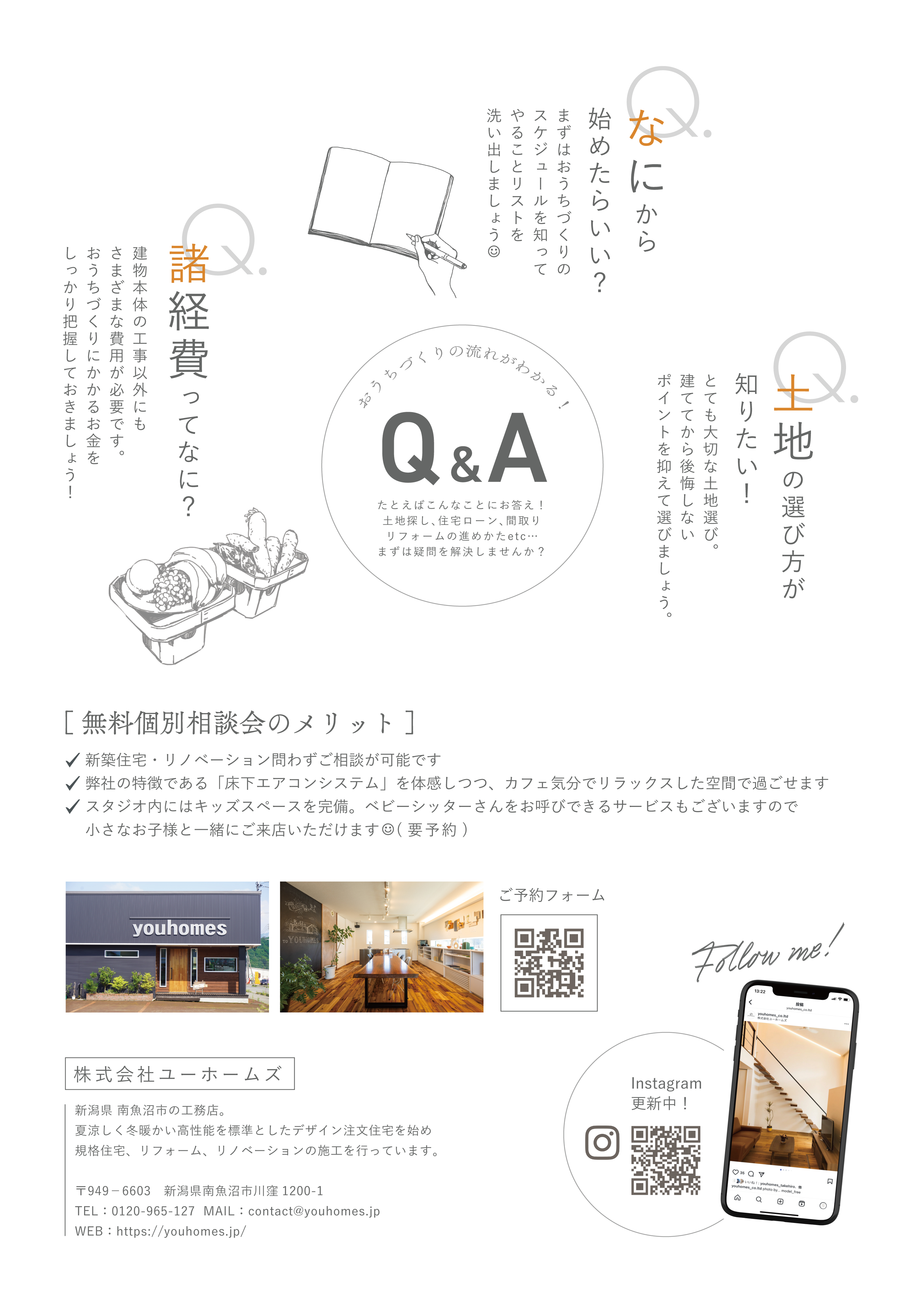 新築住宅・リノベーションとわず、おうちづくりの流れがわかる相談会です。