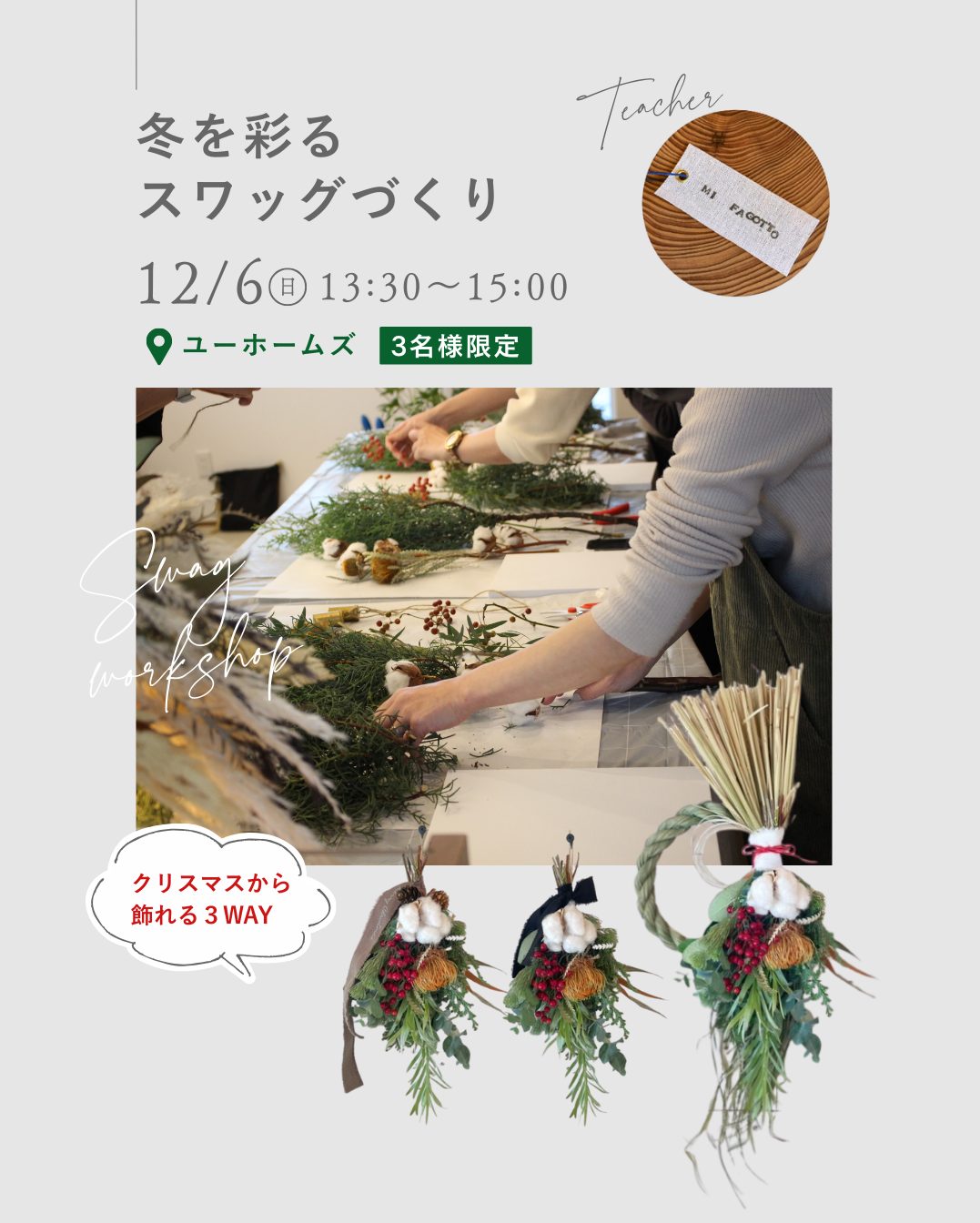 12月6日(土)、スタジオにて予約制ワークショップを開催します!