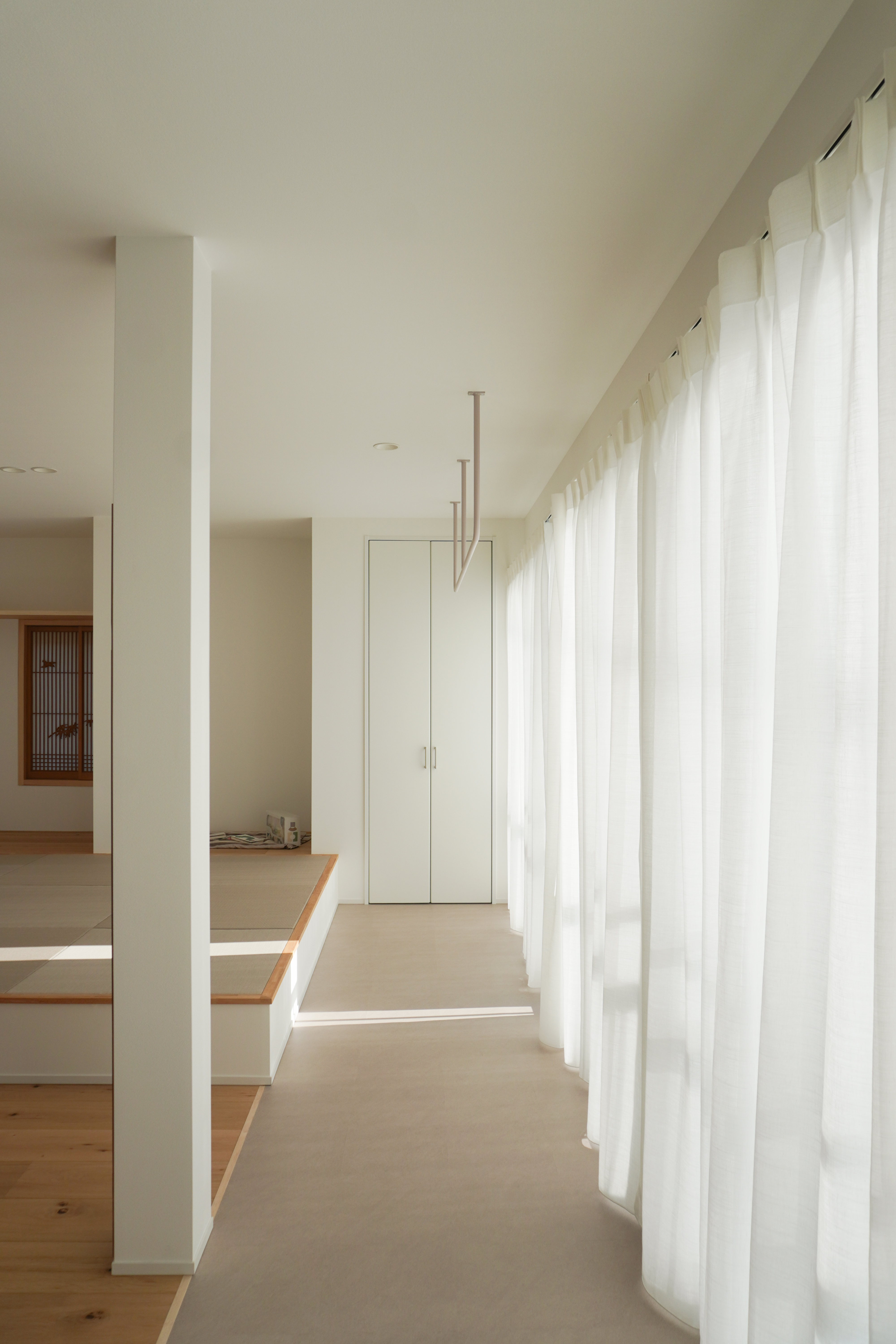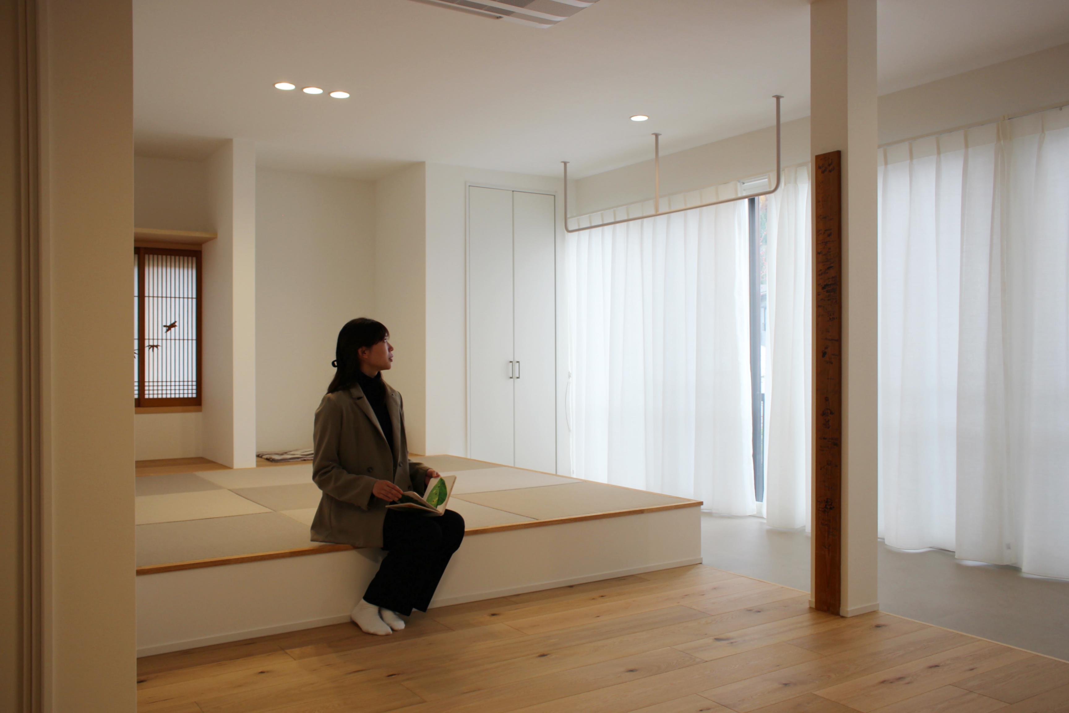 高床の2階部分をワンフロアで完結する間取りに整え、インナーサッシを取り入れて断熱性能も向上。
