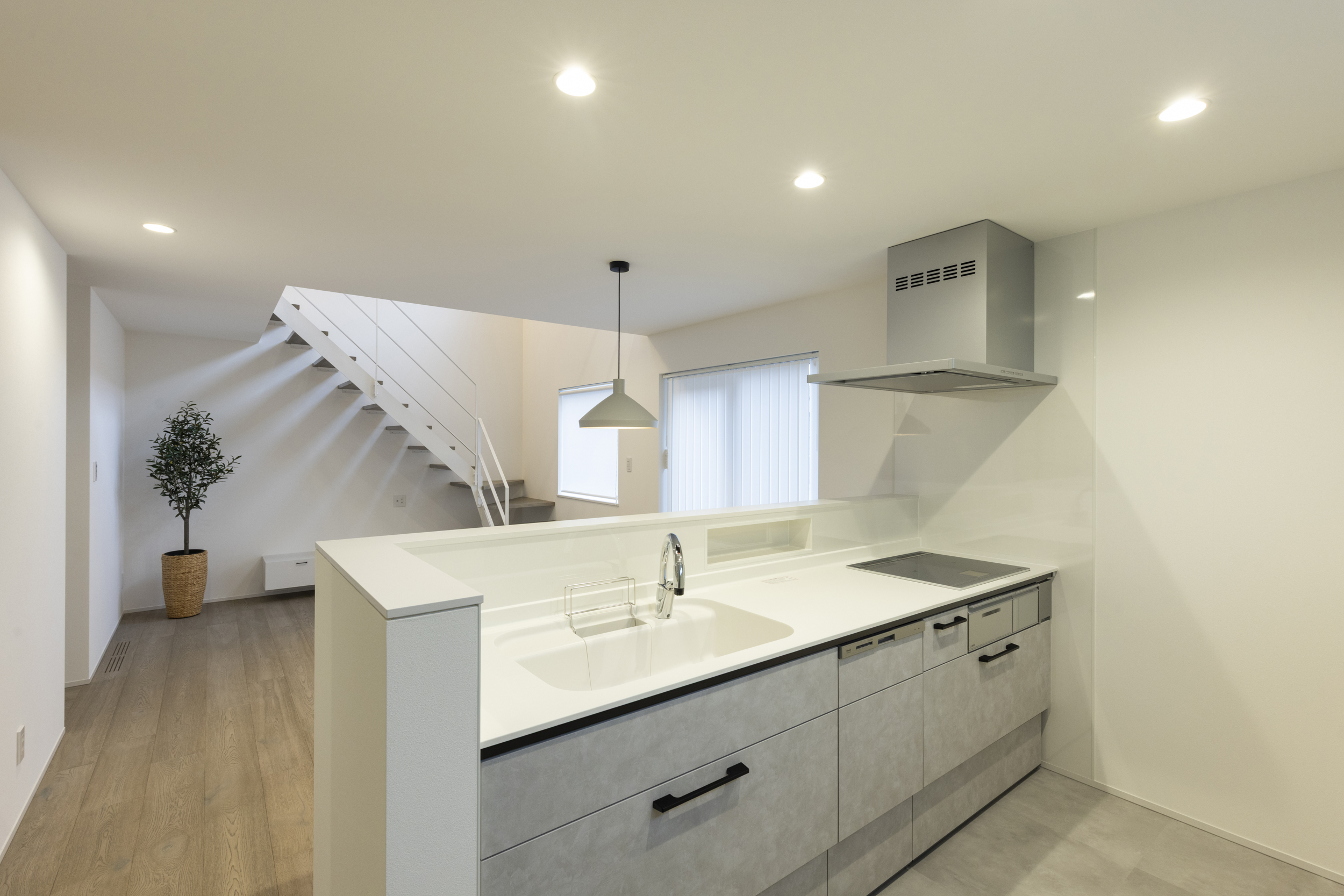 白とグレーを基調としたインテリアが織りなすノイズレスな空間に、ウォークインクローゼット、広い洗面台などご家族の“あったらいいな”をかたちにしました。